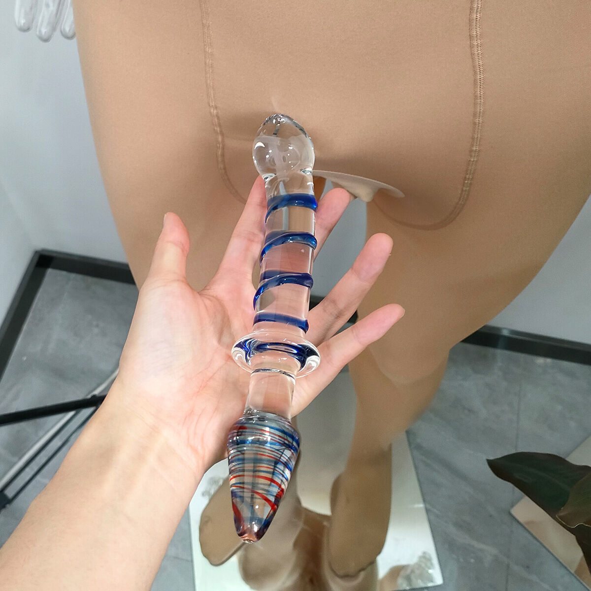 - Physical level: The glass dildo has a variety of convex and spiral textures, which can bring stronger stimulation; the material is non-toxic and anti-allergic, which can bring great sense of security to the user;
